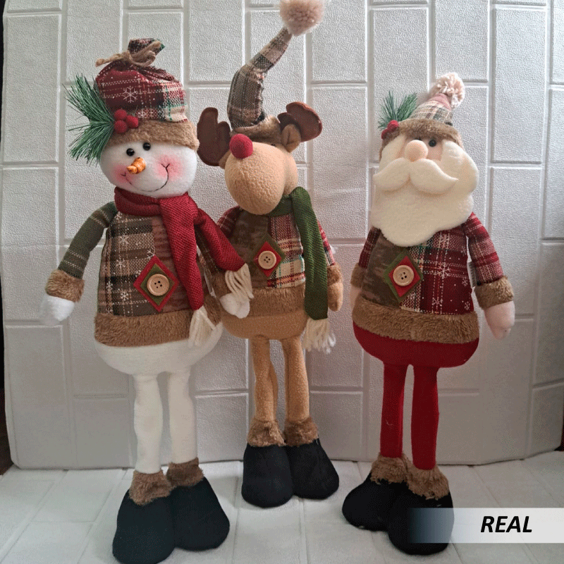 - las figuras de felpa de Navidad se colocan en su trasero con un puf para dejarlas estables y no vacilan el lugar, con patas colgantes, buenas para poner en el sofá, chimenea, automóvil, dormitorio, sala de estar, cafetería, escritorio, casa de postres y mucho más.